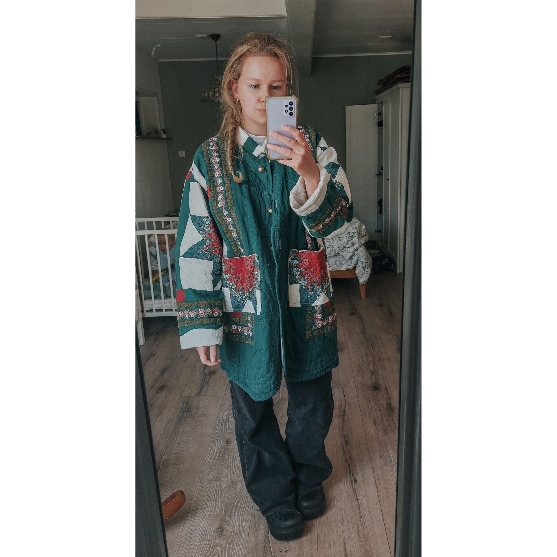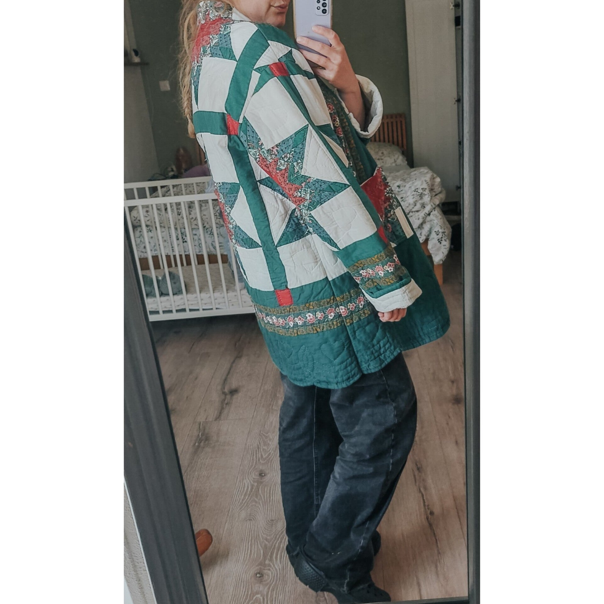 Green/red unique quilt coat m-xxl