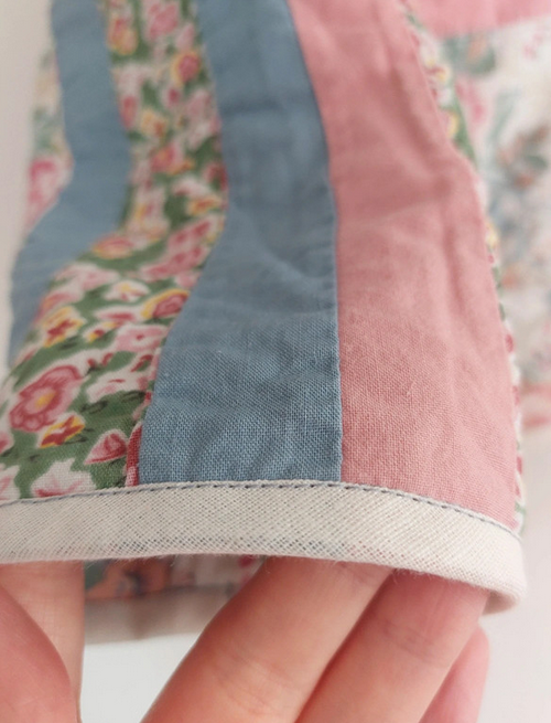 Unique patchwork coat, made out of a vintage quilt blanket. The coat has 2 pockets and closes with 5 cute vintage buttons. It is a lovely piece to use as an in-between coat. The model is designed to wear a bit oversized.
