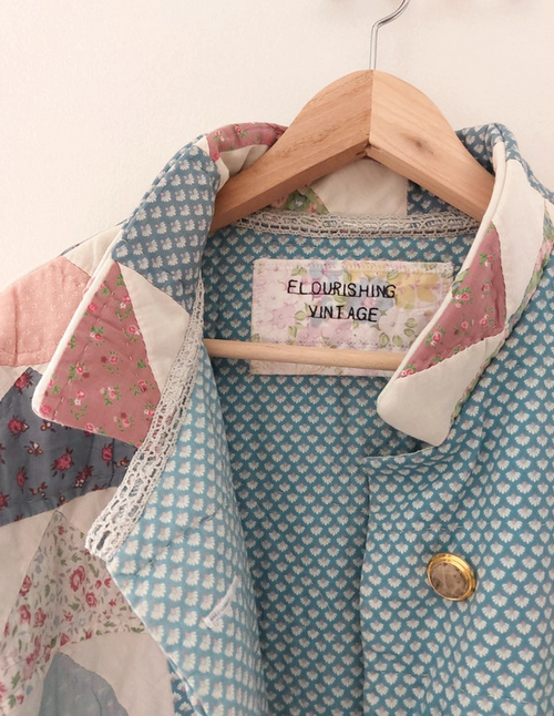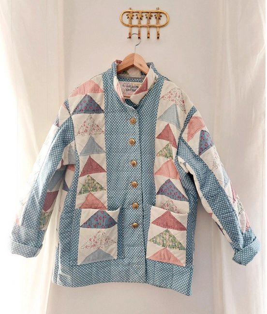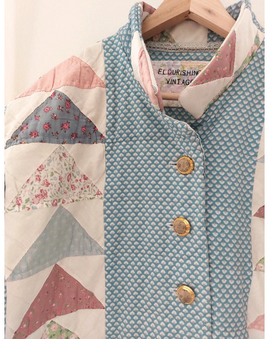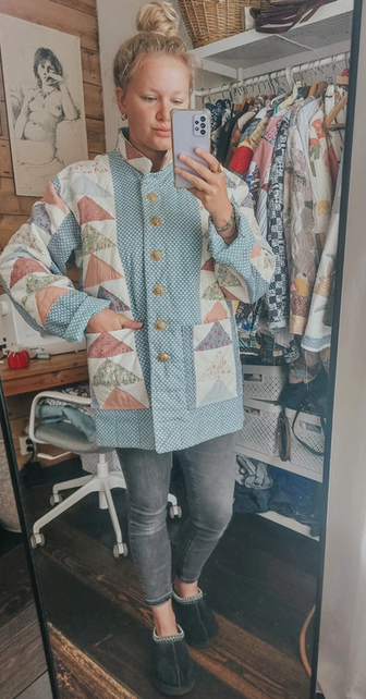 Unique patchwork coat, made out of a vintage quilt blanket. The coat has 2 pockets and closes with 6 vintage buttons. It is a lovely piece to use as an in-between coat. The model is designed to wear a bit oversized.