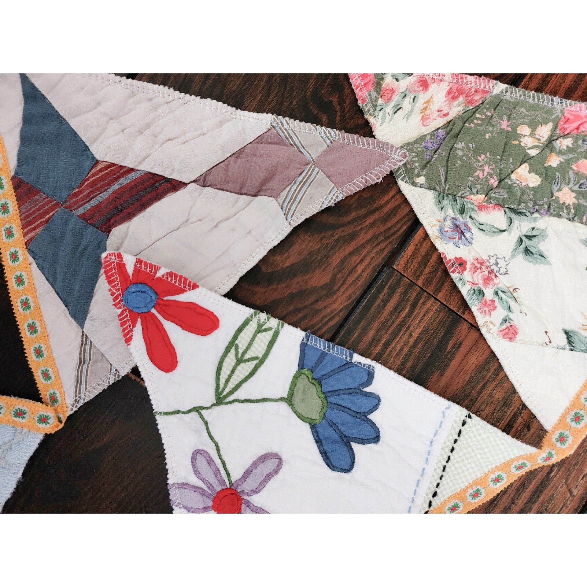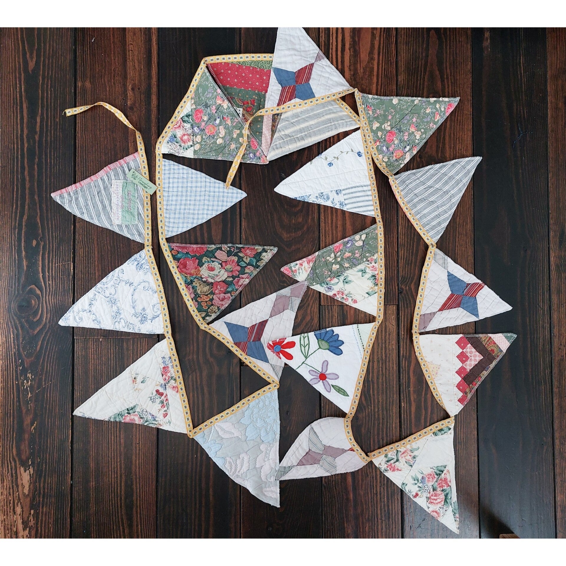 Unique bunting flags, made out of left over pieces of quilted blankets and other vintage textiles. So you'd have your own unique product, fairly made with love in the Netherlands ♡
