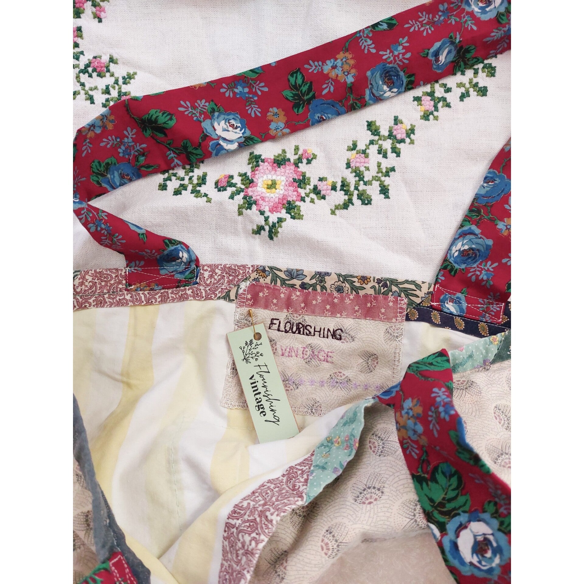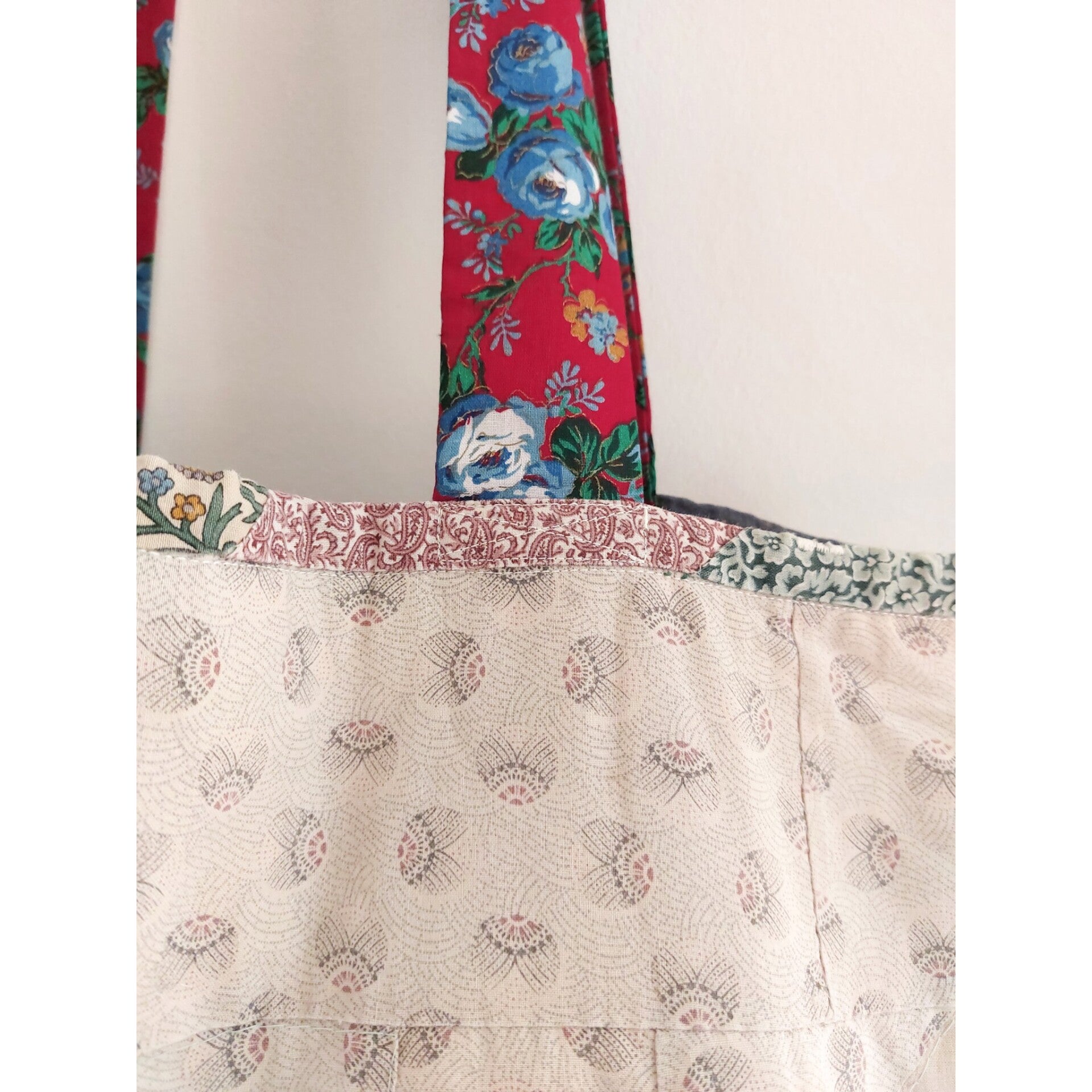 Handmade quilt shopper red flowers